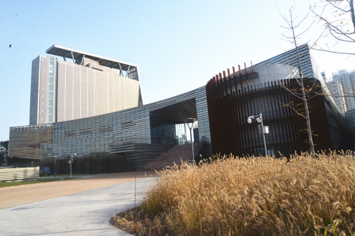 采訪完畢了,董事長還抬著頭凝視著陽光普照下的文化中心。