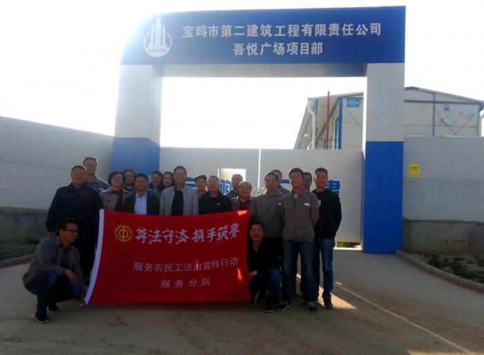 2018年10月10日下午,寶雞文理學院服務農民工法治宣傳服務分隊來到公司吾悅廣場項目施工現(xiàn)場,舉辦了一場“尊法守法·攜手筑夢”法律知識公益講座。第三十項目部、第三十八項目部的三十余名現(xiàn)場施工人員參加了活動。