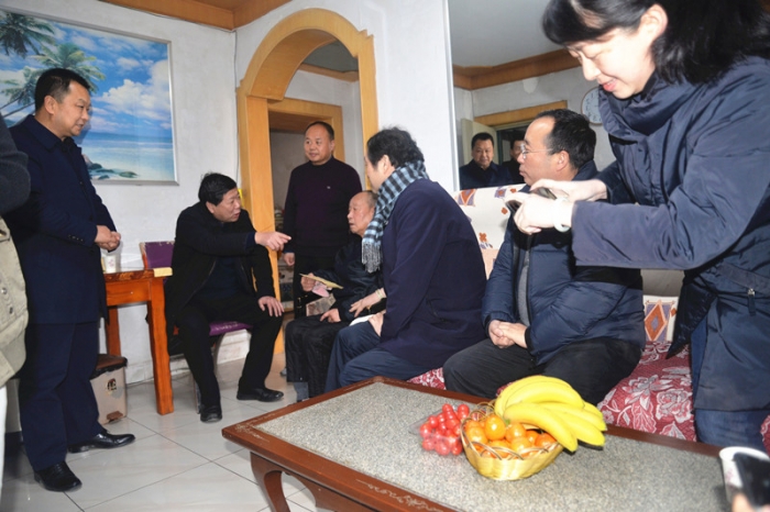1月19日,陜西省住房和城鄉(xiāng)建設(shè)廳副廳長茹廣生、建筑市場管理辦公室主任張丹、人事處副處長任曉敏,市住建局副局長霍兆寧,市勞保統(tǒng)籌處主任李向文一行來公司慰問退休職工尚安民。公司董事長胥立、副總經(jīng)理沈為民、副總會計師嚴海軍陪同。